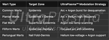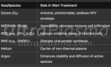 Their treatment requires both viral clearance and local tissue regeneration. UltraPlasma™, an advanced system that integrates arc, argon, and helium plasma technologies with a custom software and hardware-controlled output spectrum, introduces a novel multi-gas plasma therapeutic strategy tailored for effective wart removal, immunological modulation, and dermal regeneration.